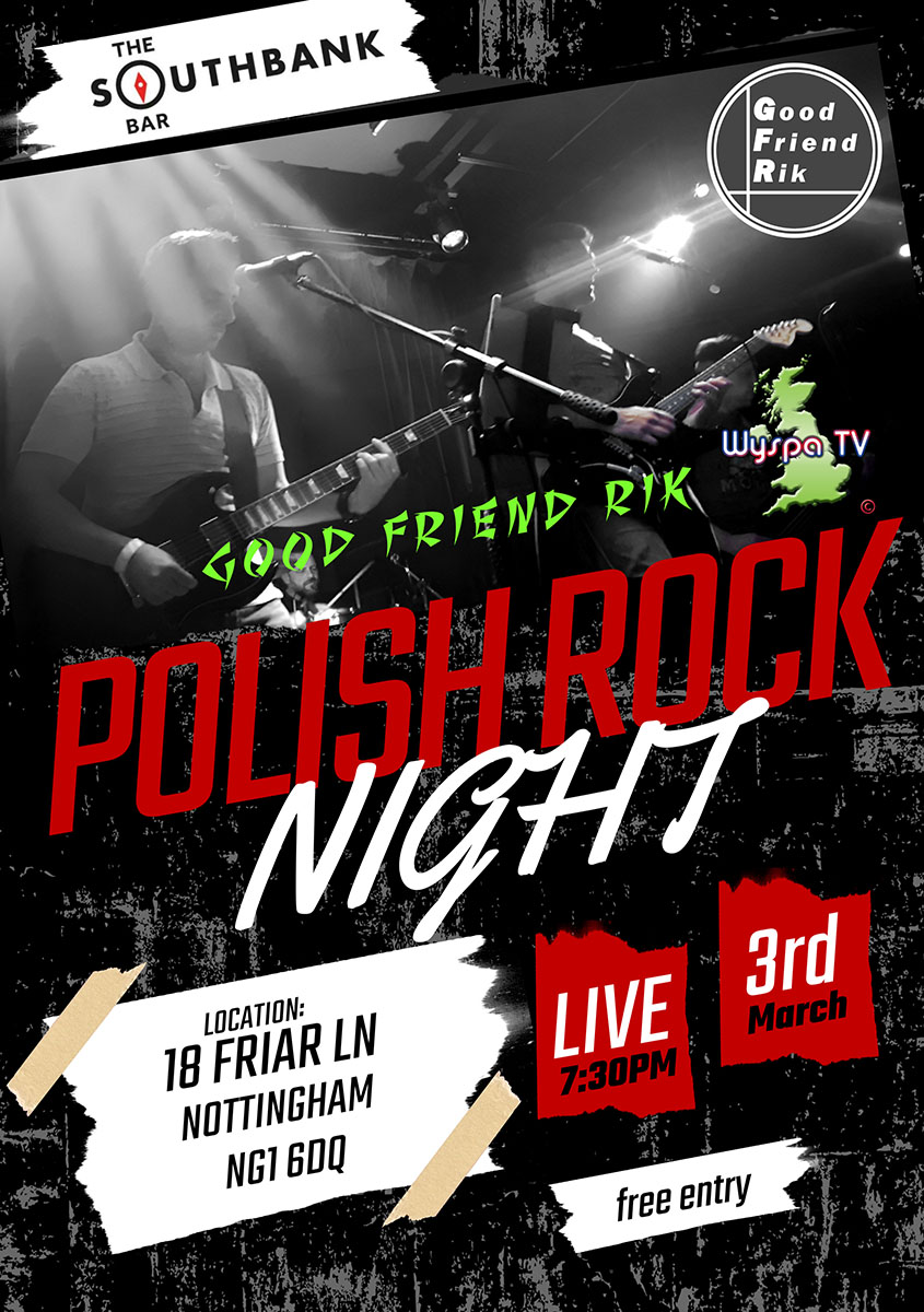 March 3 - Polish Rock Night in the heart of Nottingham! We invite everyone to The Southbank Bar at 7:30 PM!