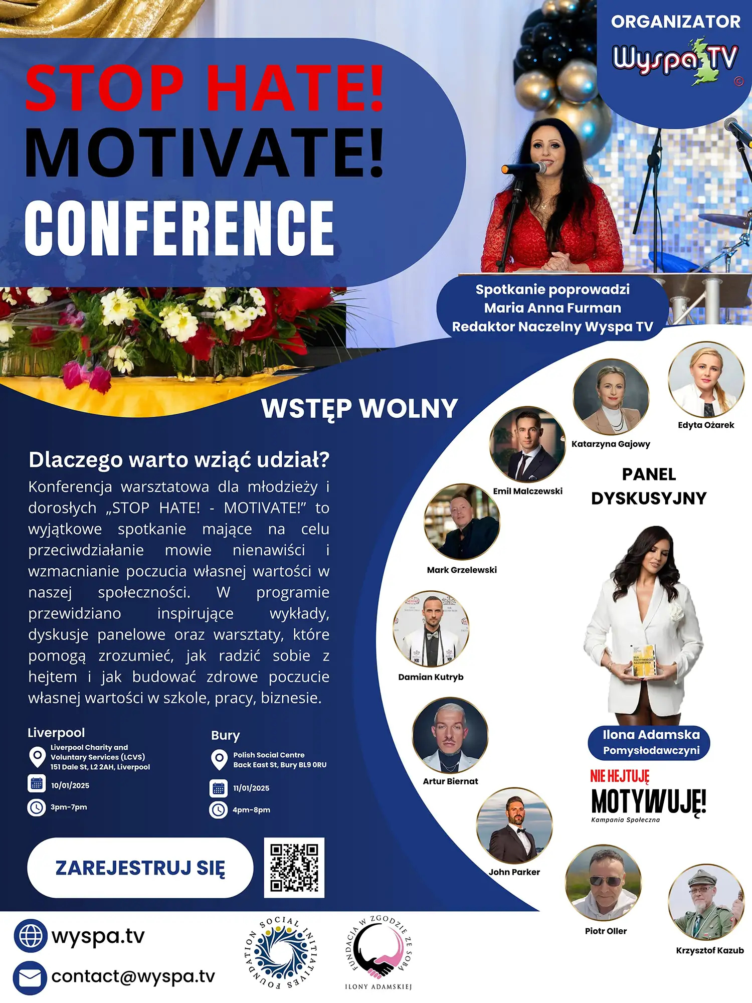 The past days spent organizing and participating in the events in Liverpool and Manchester have become a testament to the extraordinary power of community and the strength of positive energy. Led by Ilona Adamska, the "STOP HATE! MOTIVATE!" campaign was more than just a conference—it was a space for healing and openness, where everyone could find solace after enduring the challenges brought by hate and the experiences tied to it.