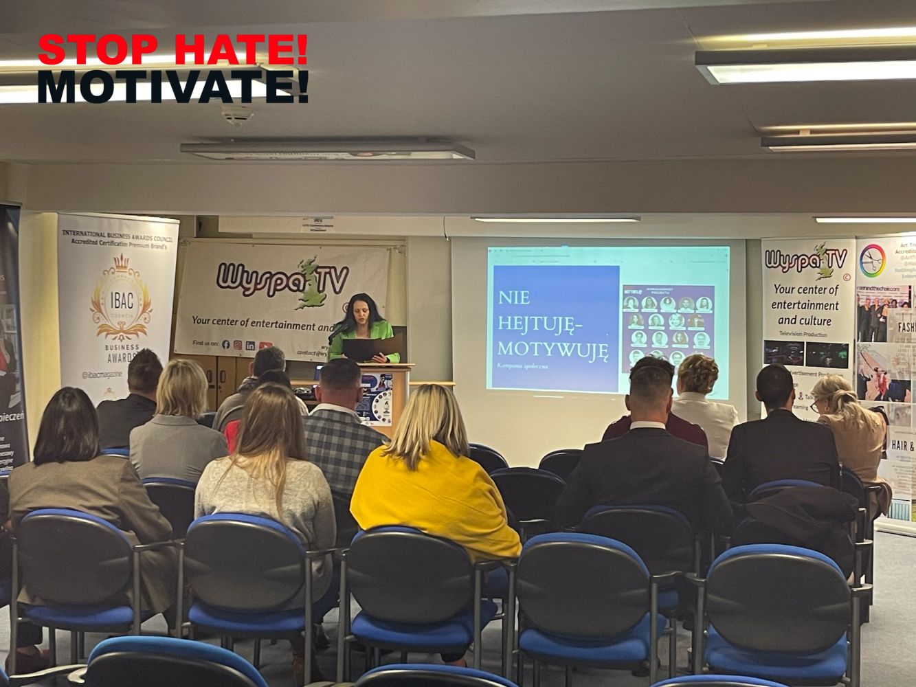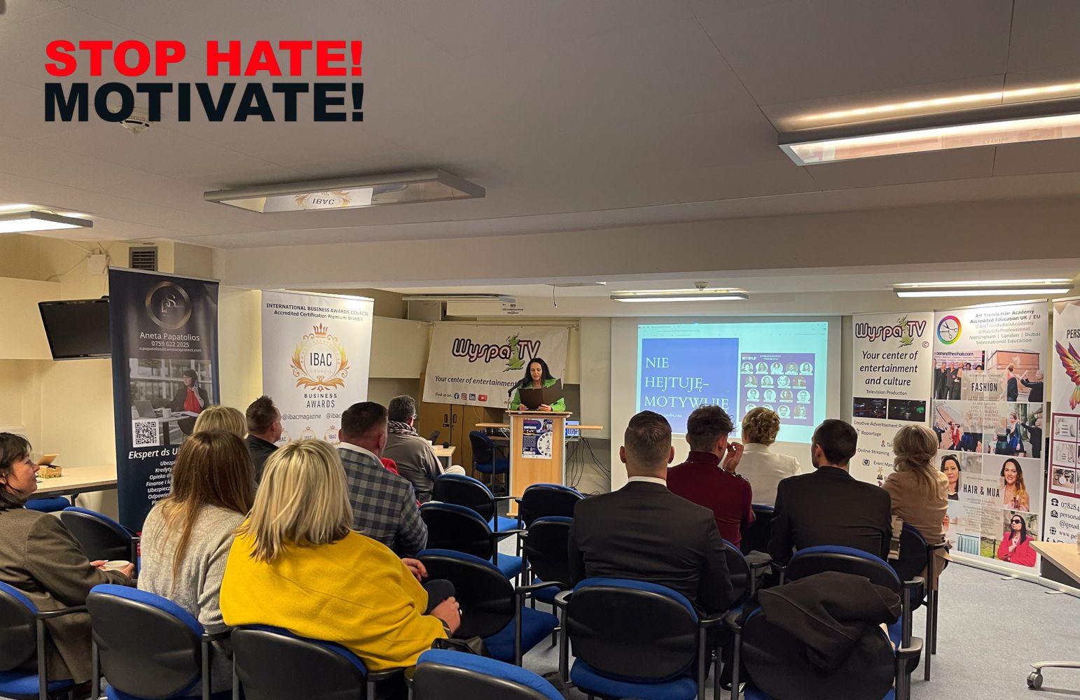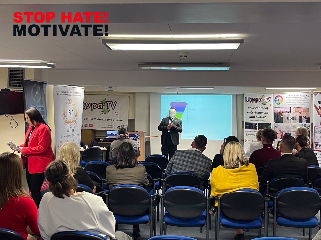 We want our message to reach an ever-growing audience, encouraging reflection and a zero-tolerance approach to such destructive actions stemming from misinformation and attempts to undermine trust. These events made us realize the necessity of educating society about the values of respect, responsibility, and mutual support. The Stop Hate! Motivate! conference in the UK was created to firmly oppose hate speech and emphasize that such behavior cannot be tolerated in any environment—private or professional.