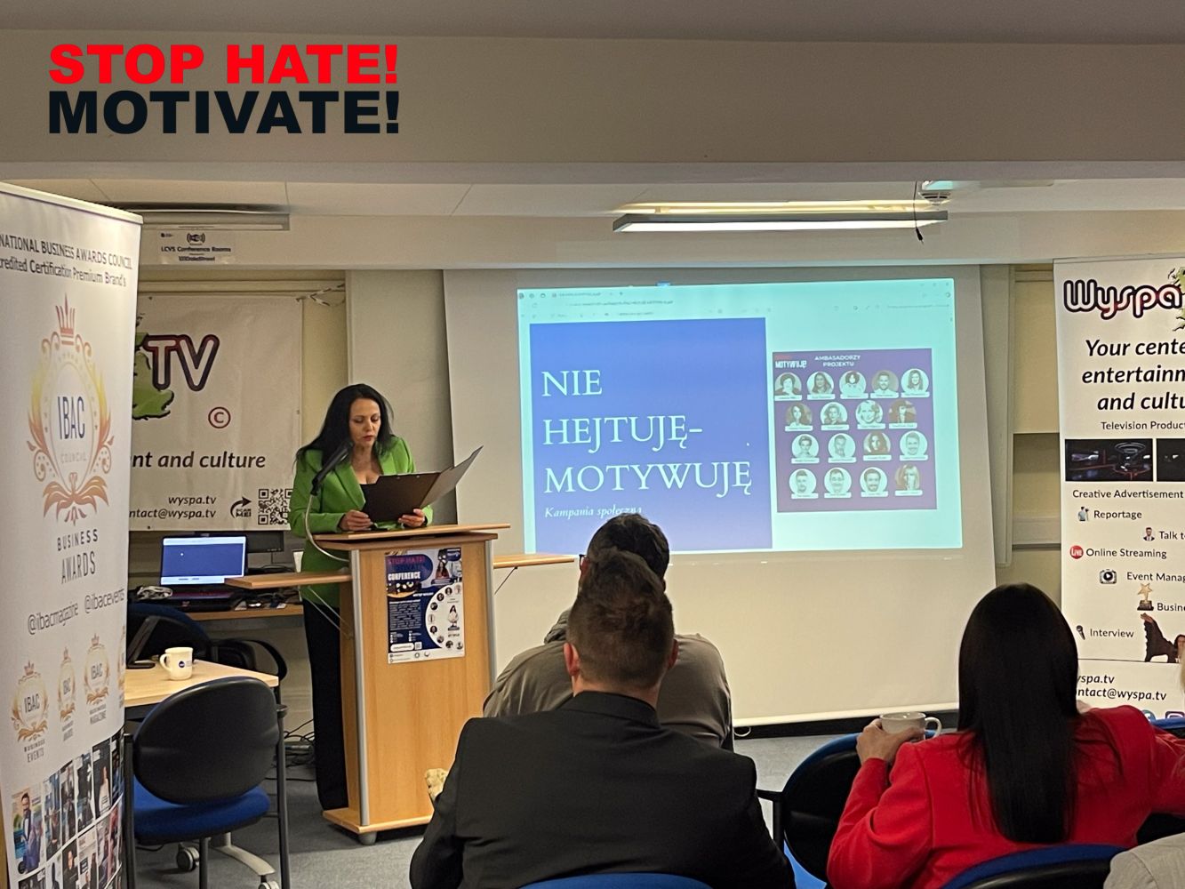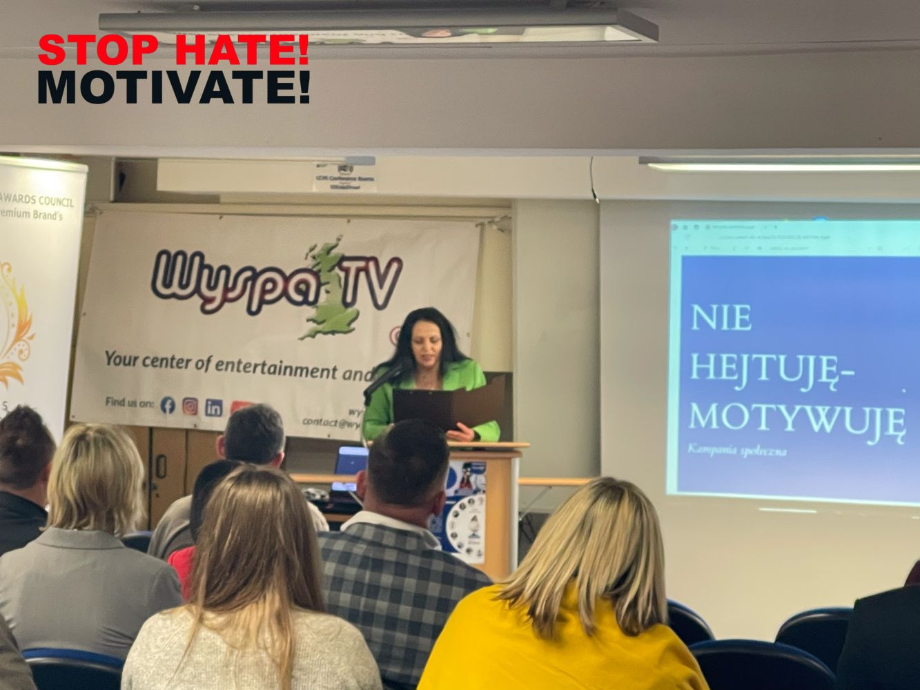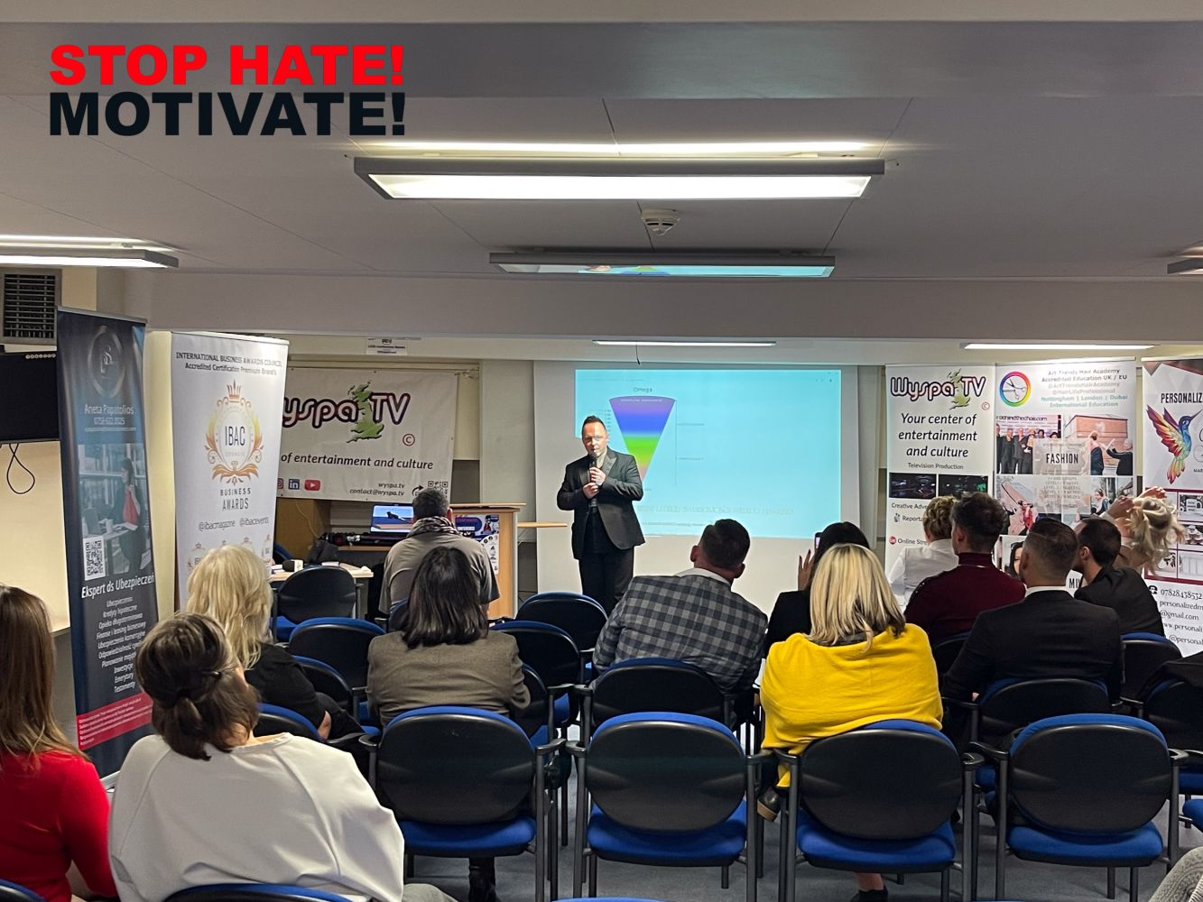 We want our message to reach an ever-growing audience, encouraging reflection and a zero-tolerance approach to such destructive actions stemming from misinformation and attempts to undermine trust. These events made us realize the necessity of educating society about the values of respect, responsibility, and mutual support. The Stop Hate! Motivate! conference in the UK was created to firmly oppose hate speech and emphasize that such behavior cannot be tolerated in any environment—private or professional.