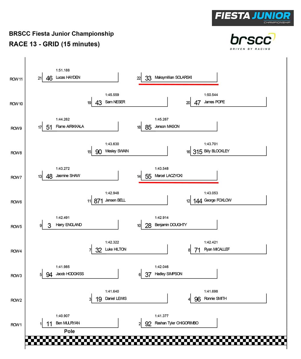 Solarski is a young and ambitious driver with immense potential. He showed in his debut that he could fight against experienced rivals. In Snetterton, he took second place in the first race, losing only a tenth of a second after a five-second penalty for Luke Hilton. However, this is only a preview of his abilities, as Solarski still has much to prove.