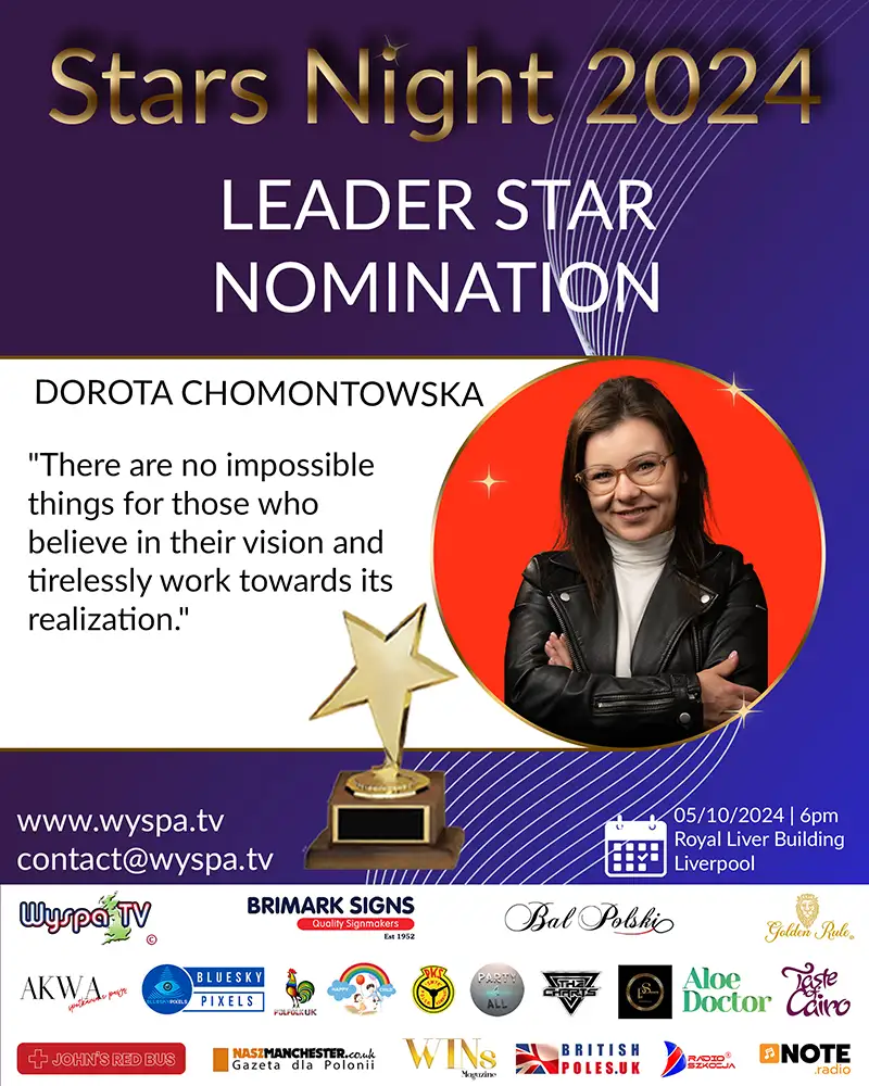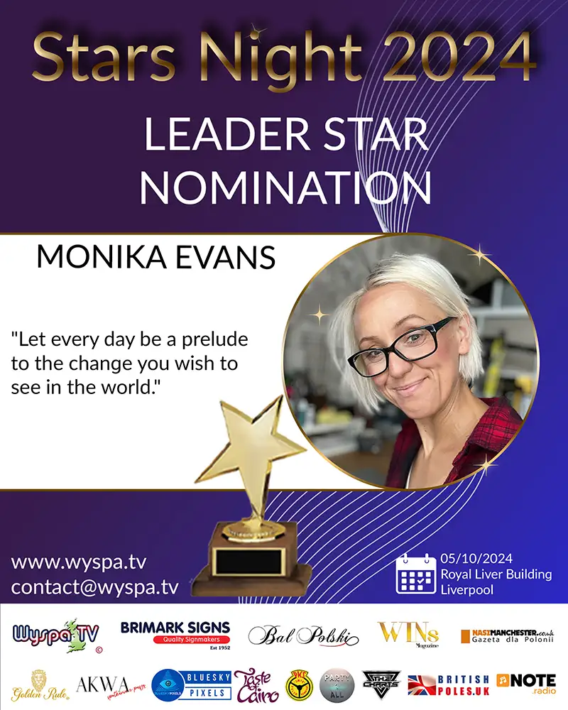In the global leadership arena, authenticity and dedication are highly valued, almost to a critical extent. Monika Evans emerges as a figure who effectively combines passion with social activity. She has been nominated for the prestigious Stars Night 2024 award in the LEADER STAR category, which recognizes her outstanding achievements as a lecturer, musician, and motivational coach. This nomination highlights her professional successes, her invaluable contribution to the Polish community in the United Kingdom, and the promotion of Polish culture and language.