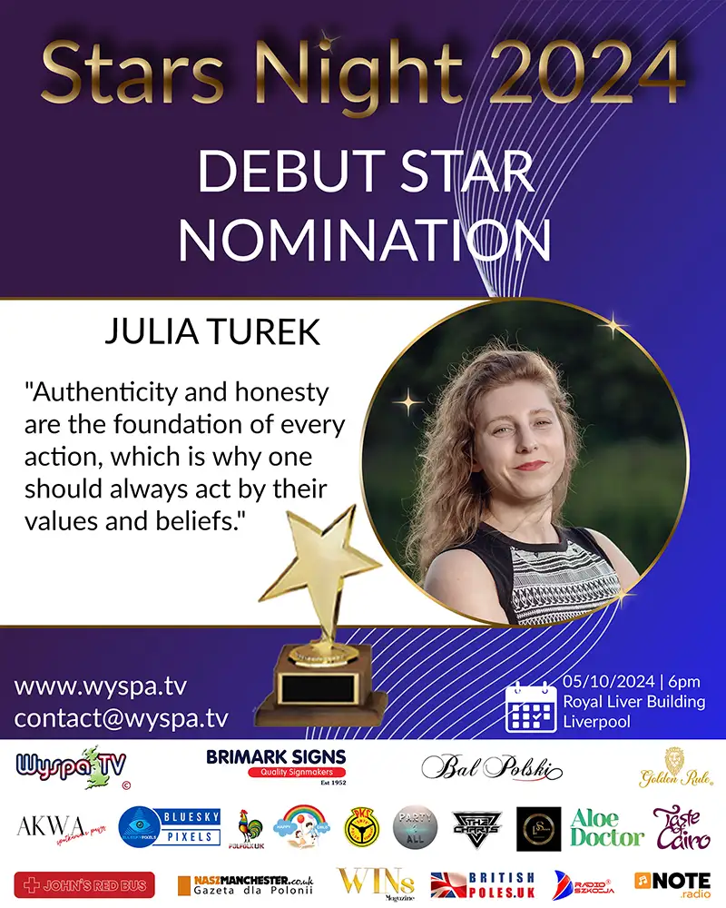 Julia Turek, a talented financial advisor, has been nominated for the prestigious Stars Night Awards 2024 in the DEBUT STAR category. Her nomination recognizes her remarkable commitment to career development and support for the local community.