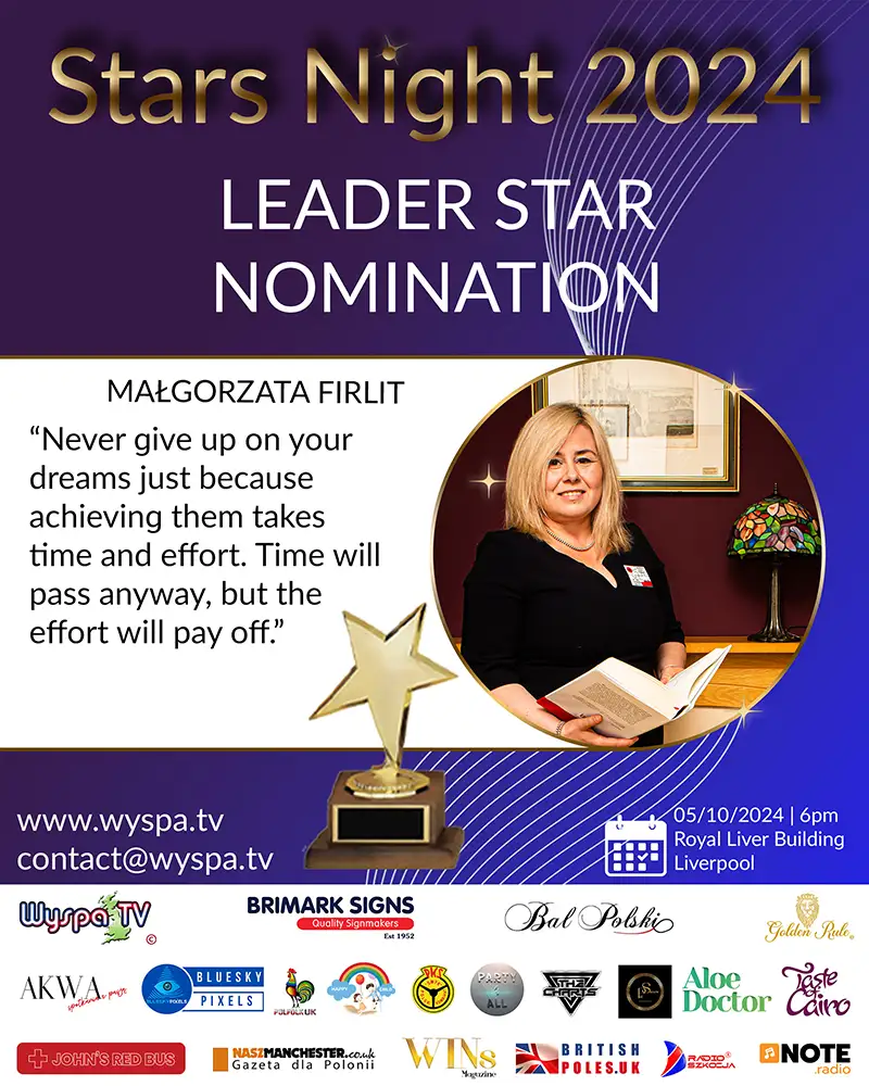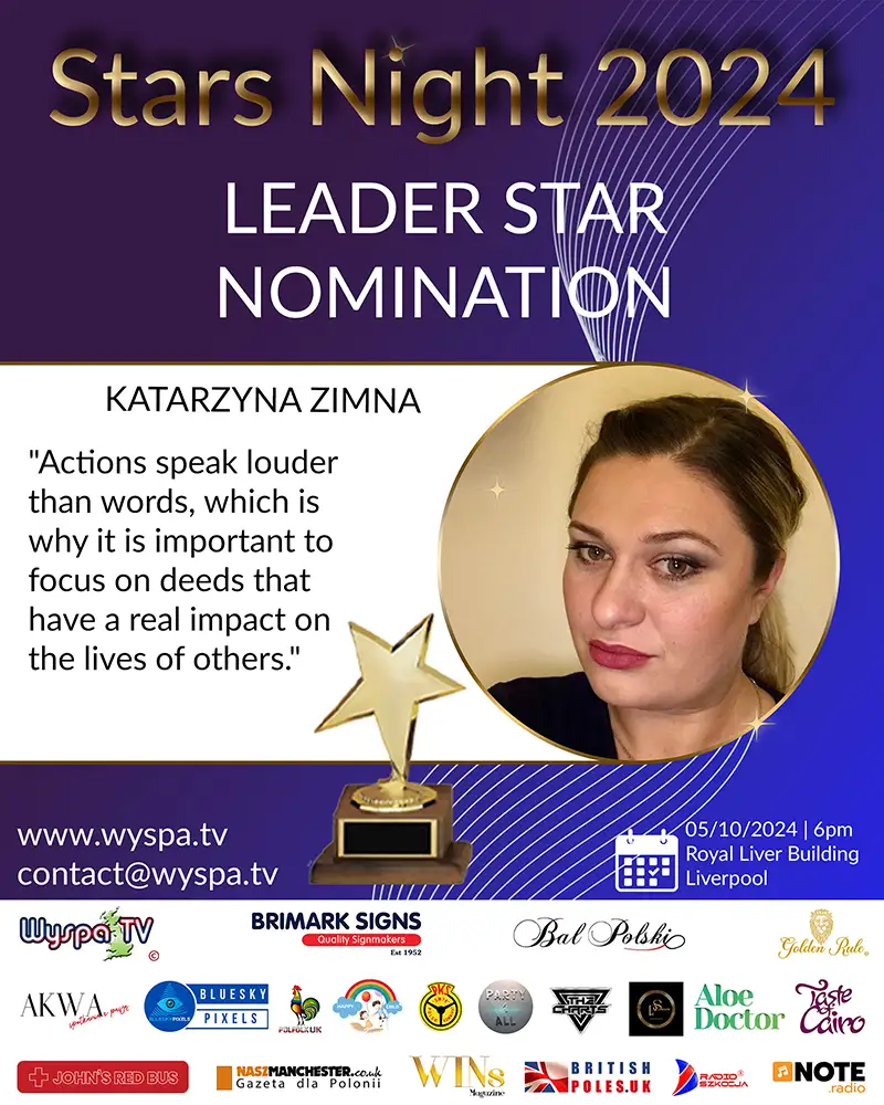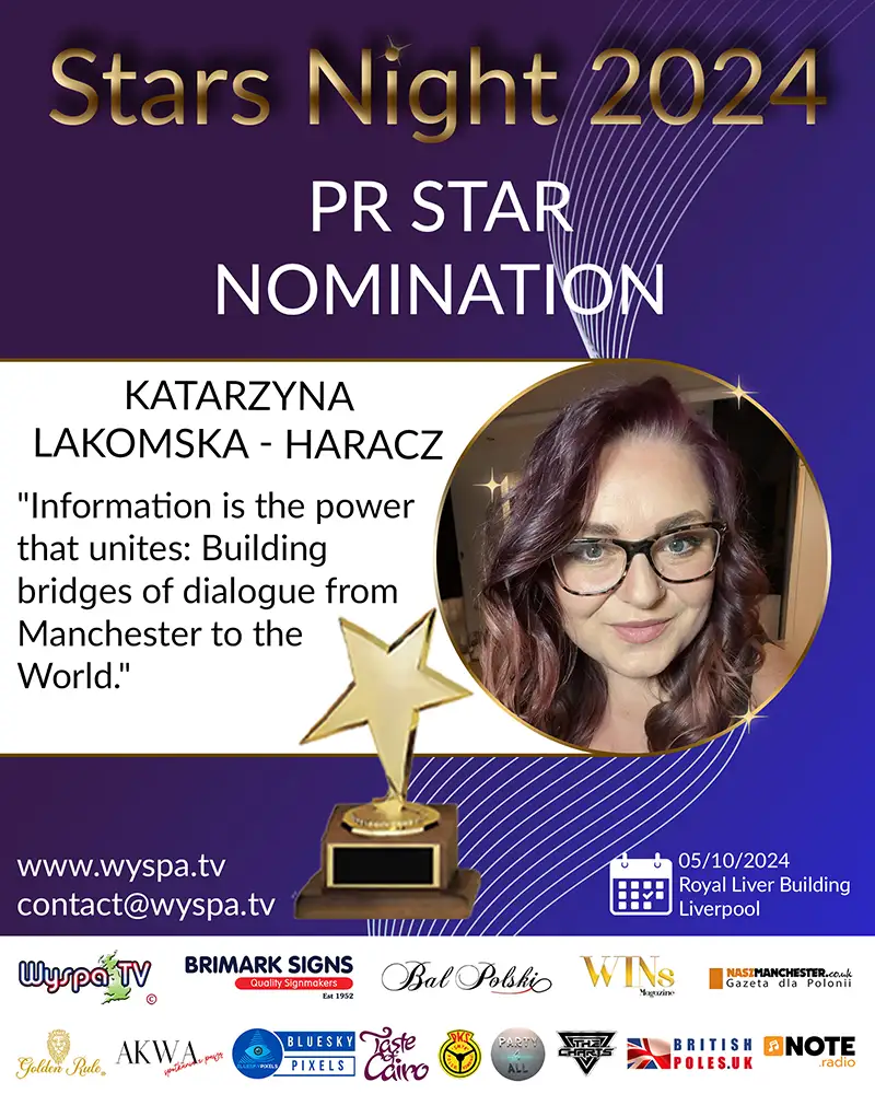 Katarzyna is a prominent figure in the Polish community activities in Great Britain, having been nominated for the prestigious Stars Night 2024 award in the PR Star category. Her ceaseless commitment to promoting Polish culture, supporting Polish business, and charitable activities deserve special recognition.