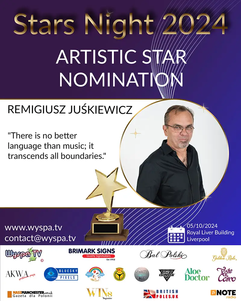 In the music world, where originality and talent are of the highest currency, Remigiusz Juśkiewicz emerges as an artist who has undoubtedly earned his accolades. His nomination for the prestigious Stars Night 2024 award in the Artistic Star category confirms his extraordinary career and impact on the music scene in Poland and abroad.