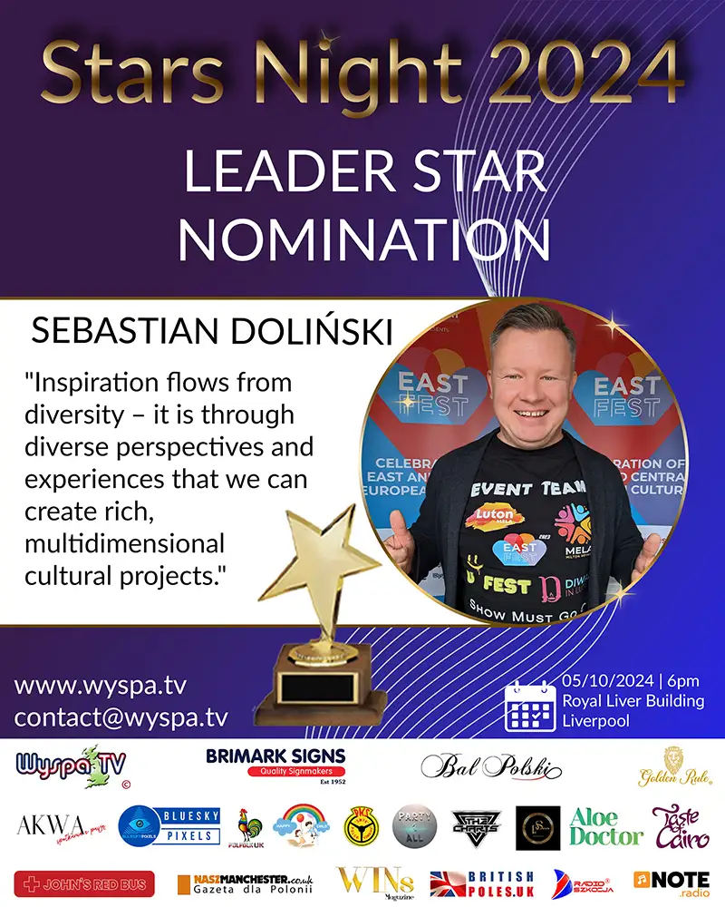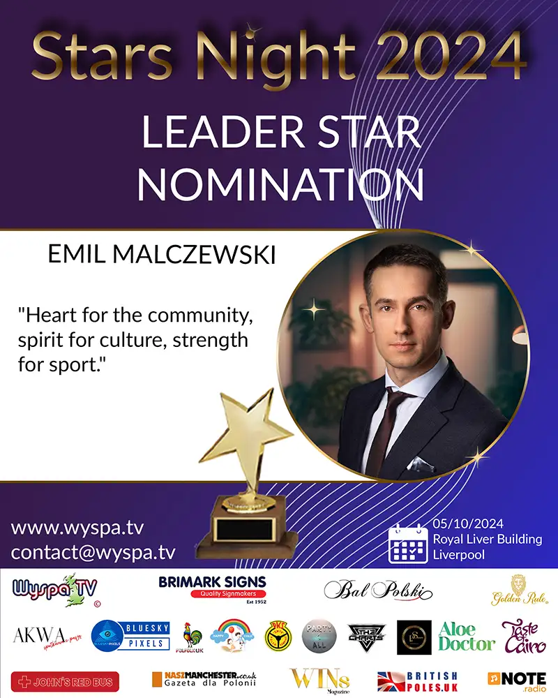 In a world where social engagement and leading by example are increasingly valued, Daniel Smykowski stands out. His relentless work for the Polish community in England has rightfully earned him a nomination for the prestigious Stars Night 2024 award in the LEADER-STAR category. Here is the story of a man who has built a platform for significant change from small steps.