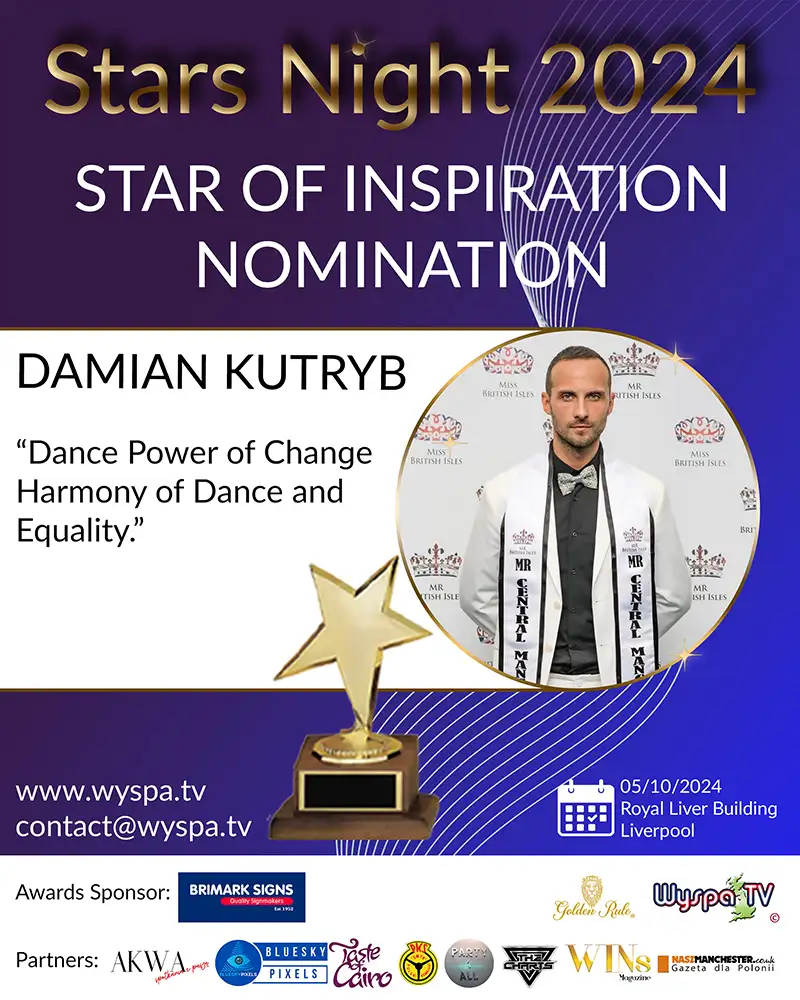 Damian Kutryb, founder and mentor of GFFDamian Dance Studio, is a figure who has revolutionized the world of dance and fitness in Manchester, creating a space where everyone can find their place, regardless of origin, sexual orientation, or abilities. His unwavering passion and commitment to promoting inclusivity and support for the LGBTQ+ community and other marginalized groups have made him an icon and inspiration for many.