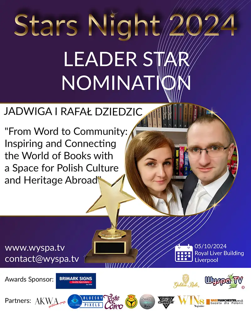Jadwiga and Rafał Dziedzic are the founders of Bartek Bookstore in the heart of Manchester. This unique place has been recognized and has become the reason for the nomination in the LEADER-STAR category. Founded by Jadwiga and Rafał, the bookstore is a cultural epicentre for the Polish community abroad, offering a rich selection of literature and becoming a meeting place, a hub for the exchange of thoughts, and a promoter of Polish culture.