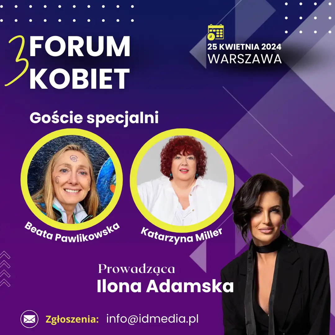Wśród gości specjalnych spotkasz równie znaczące i niesamowite kobiety w różnych sferach życia publicznego: Katarzyna Miller, jedna z najbardziej znanych i cenionych w Polsce psycholożek i psychoterapeutek, której głos w debacie o zdrowiu psychicznym i emocjonalnym jest niezwykle ceniony, oraz Beata Pawlikowska, pisarka, dziennikarka, podróżniczka, autorka ponad stu książek motywacyjnych, podróżniczych, kulinarnych i językowych, której książki i opowieści z odległych zakątków świata zainspirowały już tysiące Polek. Ich obecność dodaje wydarzeniu niesamowitej wartości, a ich doświadczenie jest bezcennym atutem Forum.